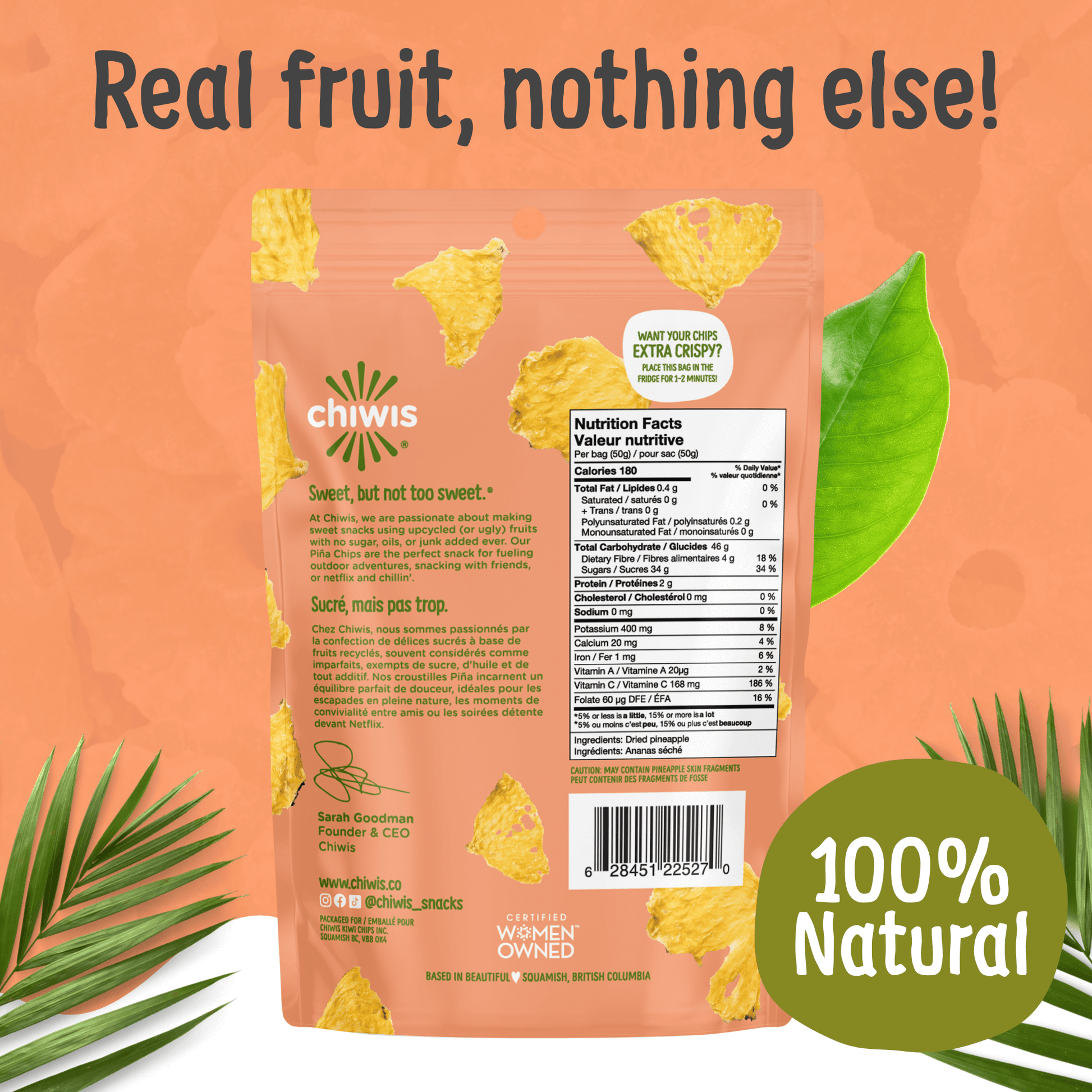 Naturally sweet, crunchy, and fibre-rich, Chiwis Piña Chips deliver big pineapple flavour in every bite.
